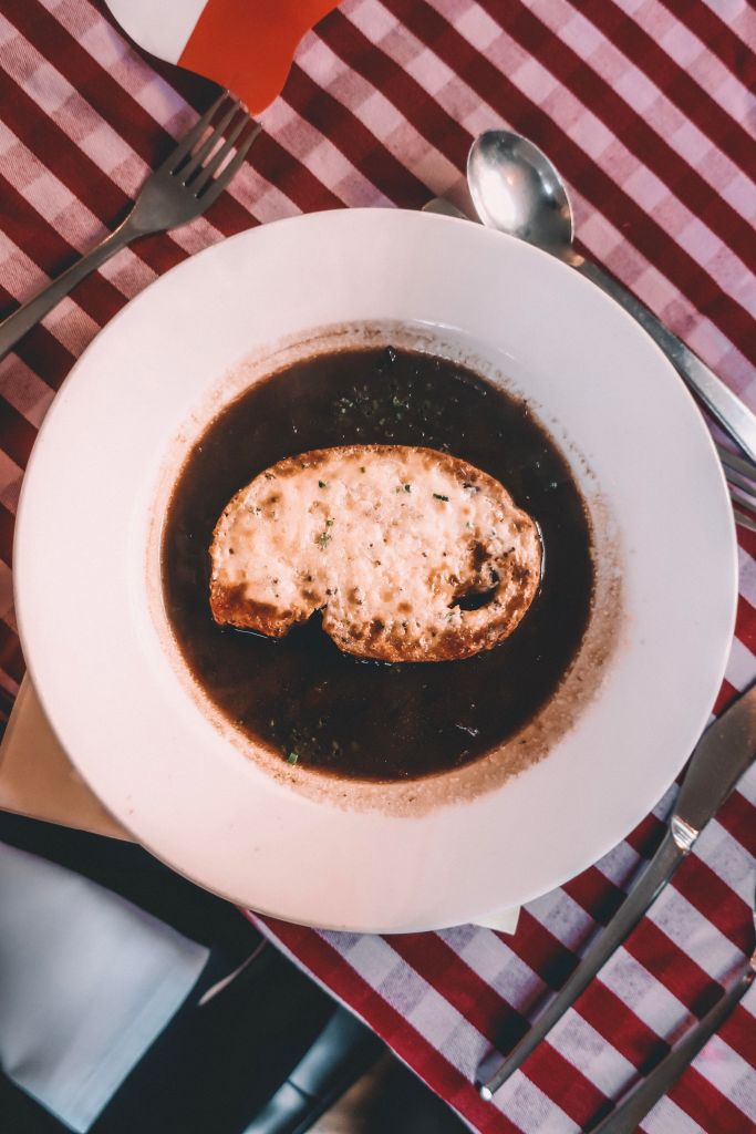 We started with French onion soup which was pretty damn good and was topped with a giant floating, cheesy crouton. We also tried the pate! It was good, but nothing to write home about.